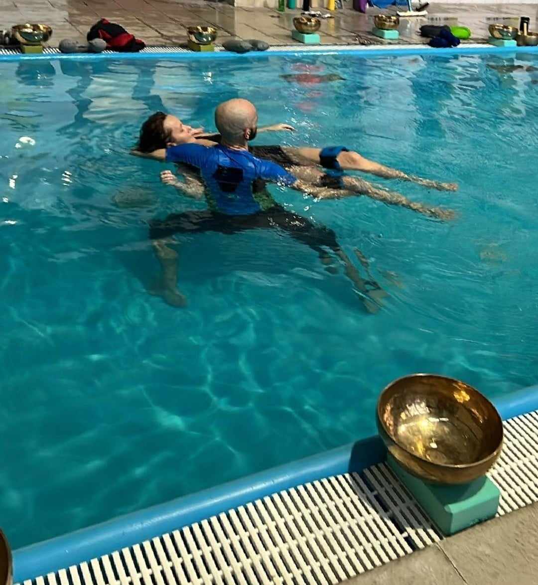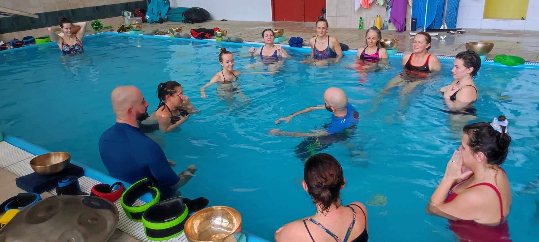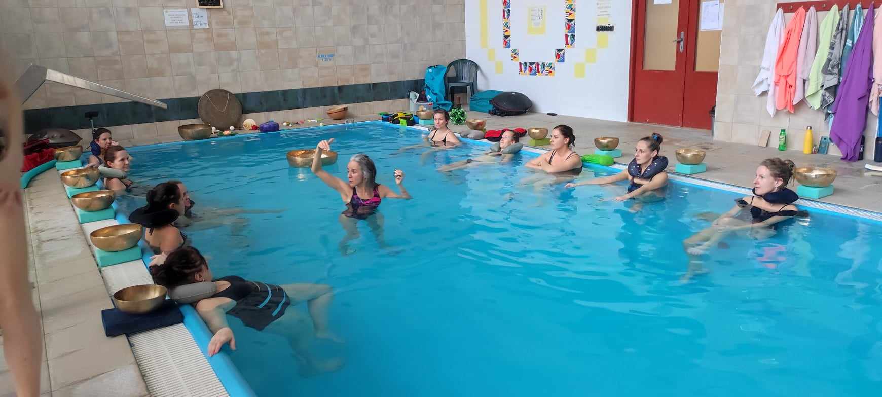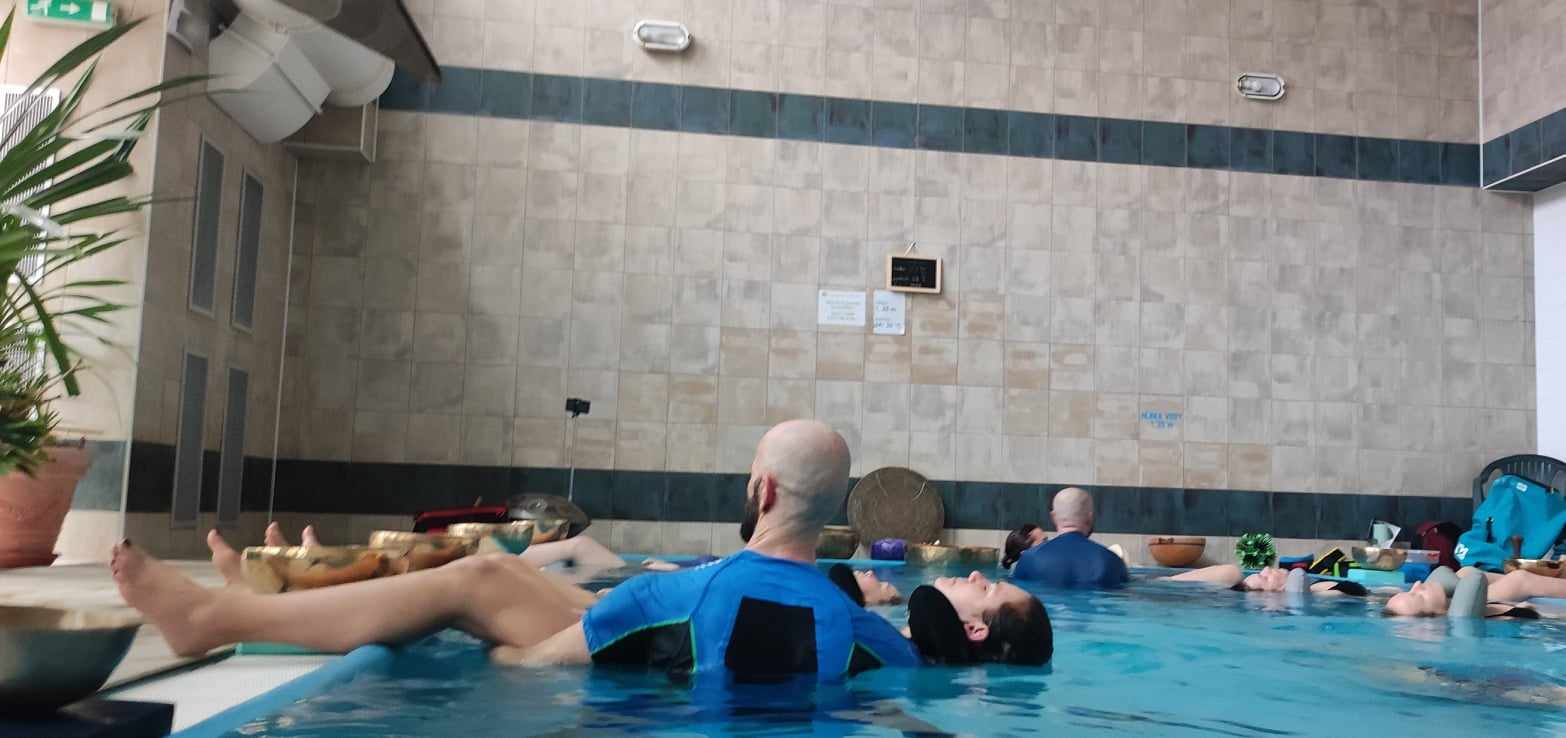 V cene workshopu je aj prenájom bazéna, terapeutická práca vo vode dvoch Watsu terapeutov a prenájom nástrojov je v cene.