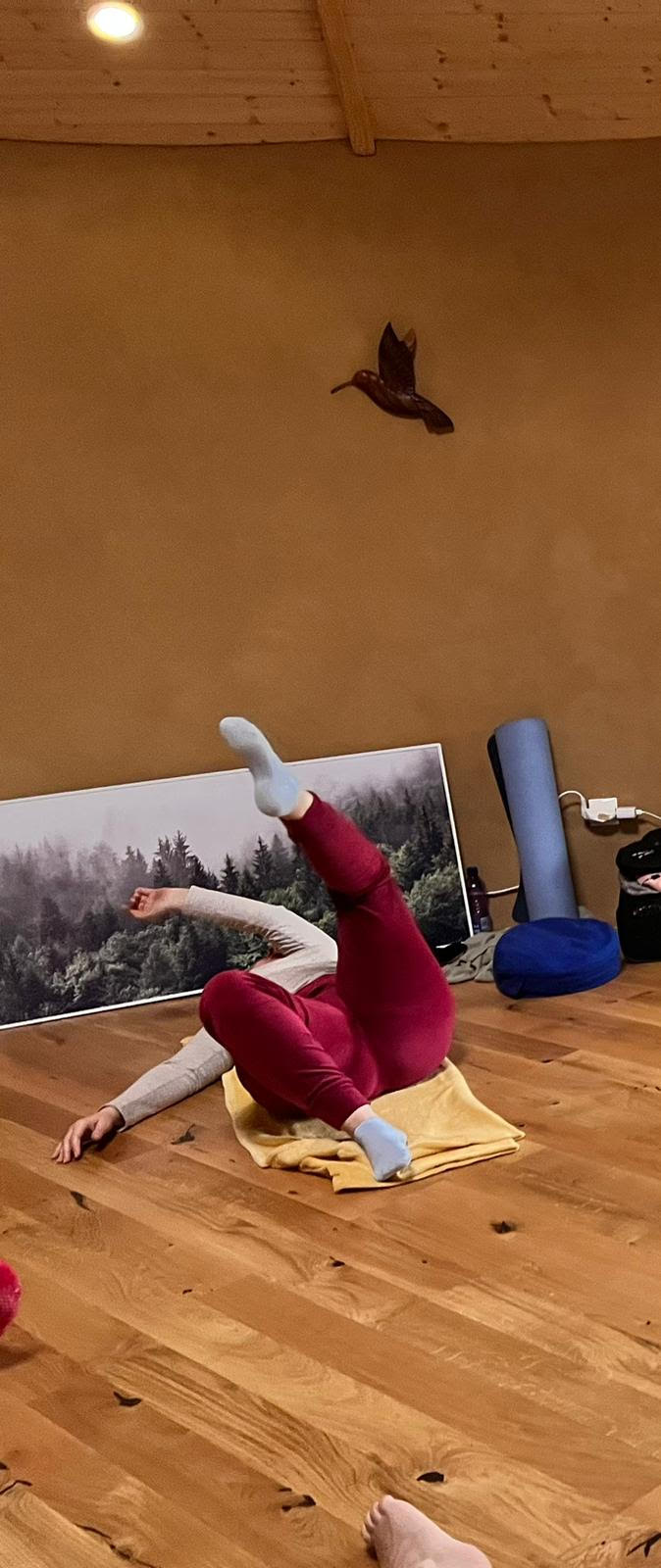 Zimné ÚSTRANIE vytvorené a vedené famóznou somatickou terapeutkou a mojou spolužiačkou z VŠ Moni Stehlíkovou a inšpiratívnym muzikoterapeutom Majom Gliganičom v Novej Bani, bolo zamerané na hlbokú regeneráciu nervového systému a prácu s vodou v tele cez introspekciu, uvoľňovanie, precítenie vlastnej váhy, prácu so zvukom v tele, prácu s uzemňovaním a stabilizačnými technikami, prácu so zvukom vo vode za pomoci hudobných nástrojov, a mnoho mnoho ďalšieho. Dopriala by som každému toľko výživného času stráveného so sebou. Veľká vďaka Monike, ktorá vytvára tolerantný priestor plný rešpektu, aby každý mohol pracovať s telom v duchu vlastného presvedčenia, vlastnej viery.